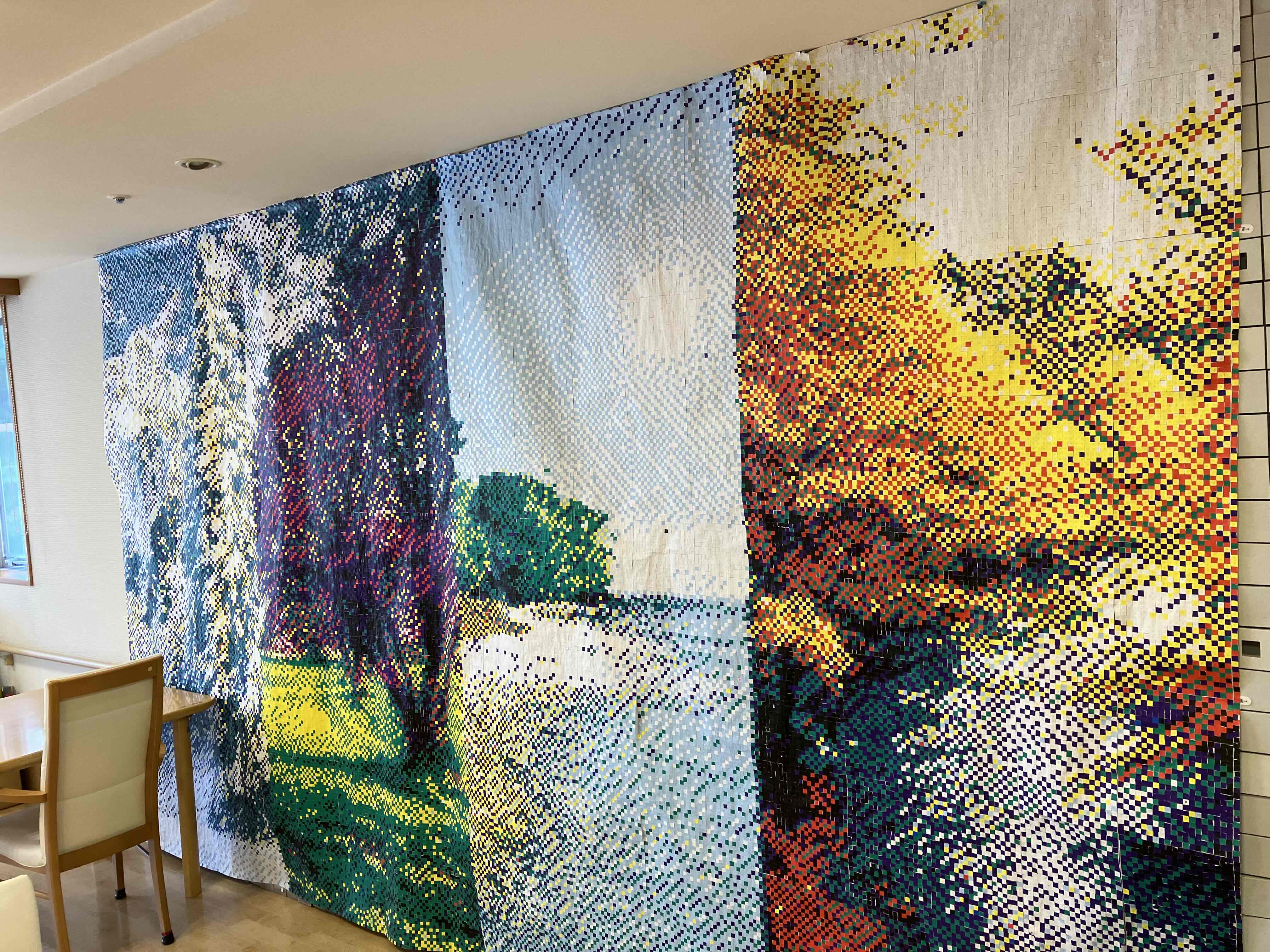 玄関には職員のモザイク画があり、2階フロアには四季を感じられる作品を飾っています。
